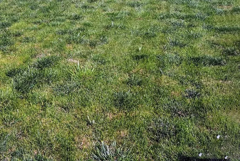 與草地早熟禾和多年生黑麥草相比,葦狀羊茅依然略顯粗糙和高大,混播時必須以葦狀羊茅為主。葦狀羊茅的比例夠大,才能在草坪中均勻分布,形成整齊美觀的景觀效果。如果葦狀羊茅的比例太少,一叢叢零星分布的葦狀羊茅就會變得更加粗大,草坪高低不平,不僅難看,也沒有使用價值(下圖)。
